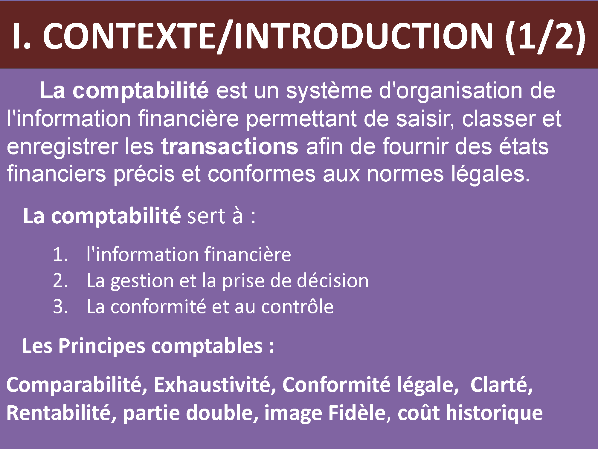 La comptabilitéest un système d’organisation de l’information financière permettant de saisir, classer et enregistrer lestransactions afin de fournir des états financiers précis et conformes aux normes légales.